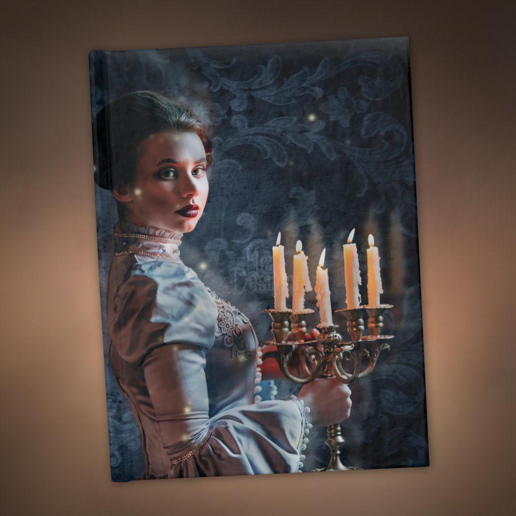 - Full-wrap print featuring a candlelit, vintage-inspired illustration